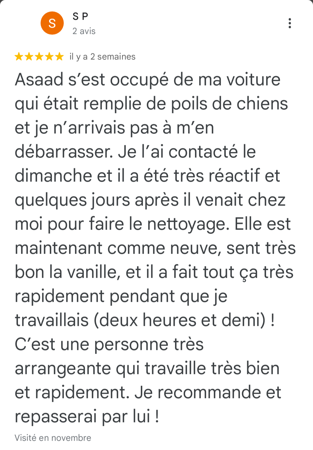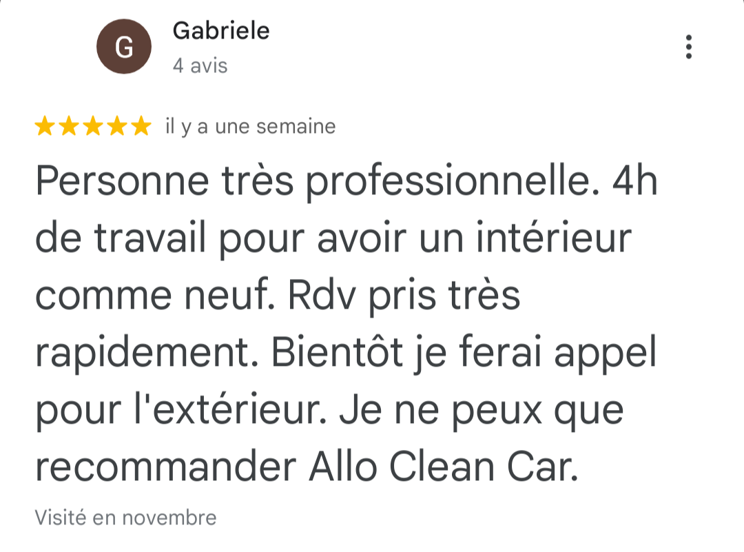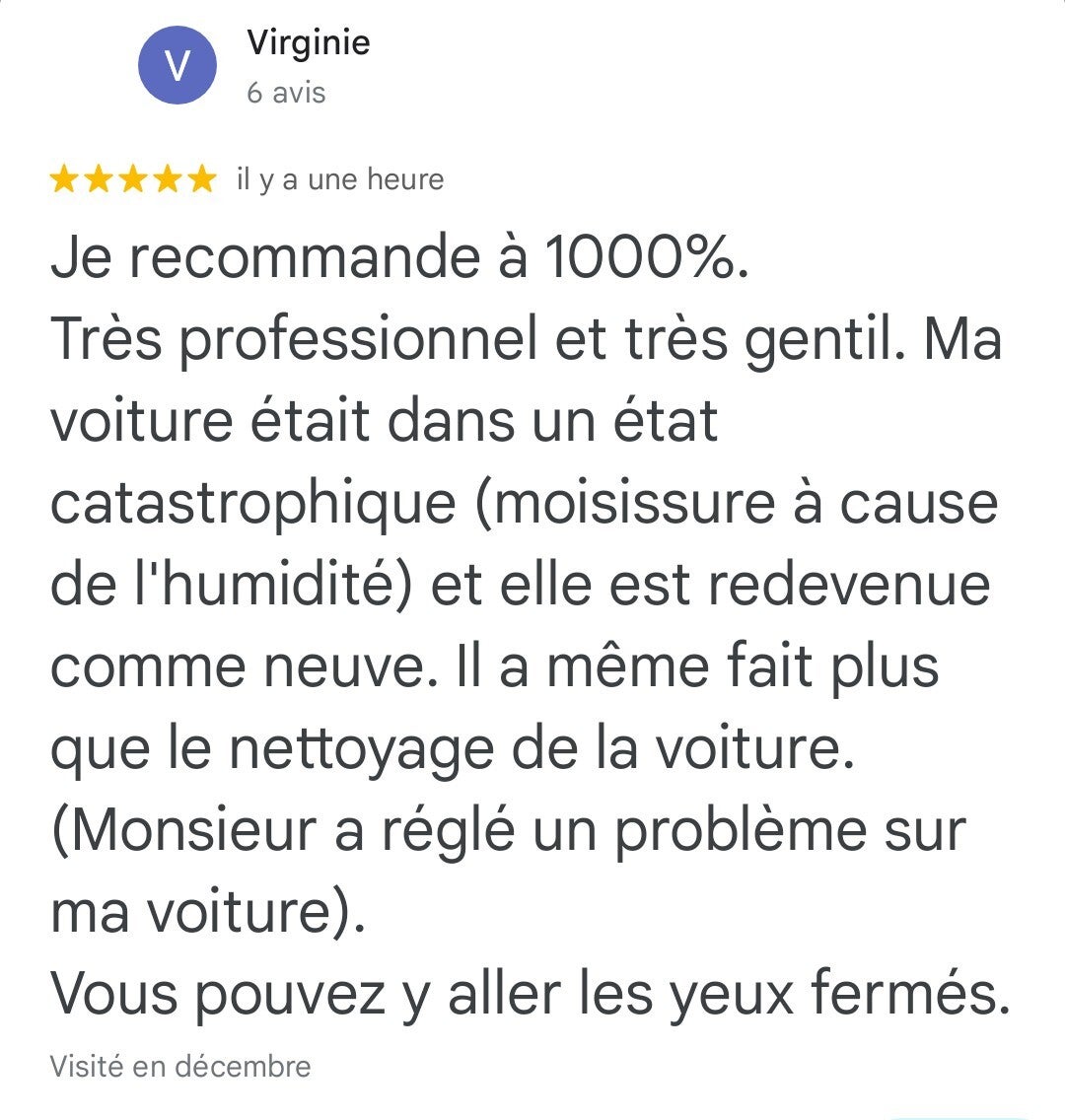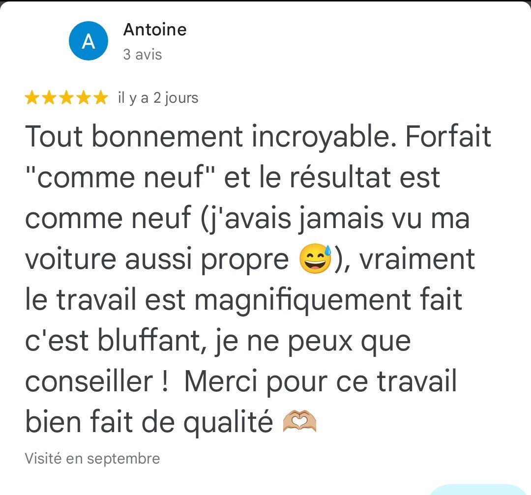 “Service impeccable! Ma voiture n’a jamais été aussi propre, et tout ça sans quitter mon domicile. Je recommande vivement!”