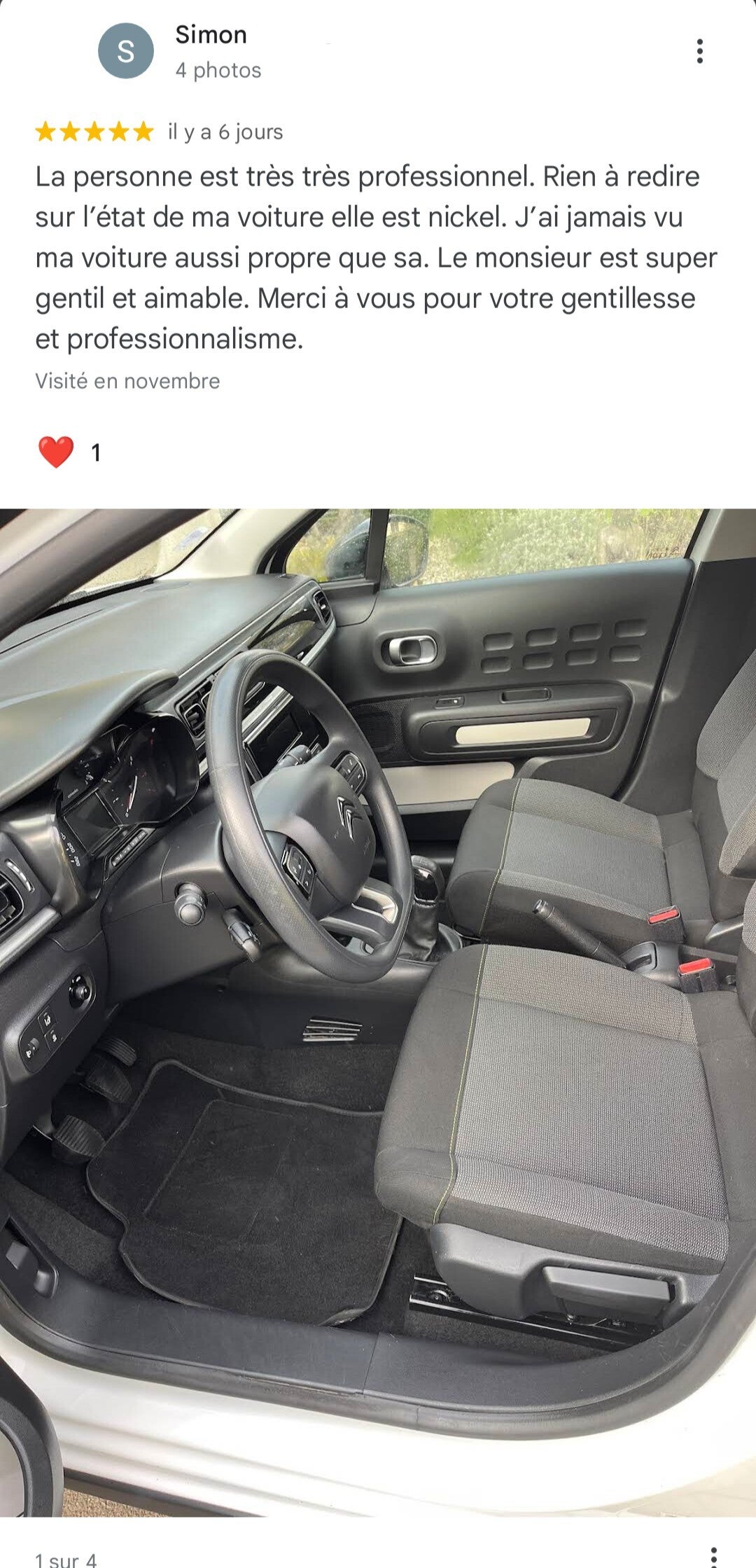 Travaillant dans le bâtiment, je n'ai jamais le temps de nettoyer ma voiture donc je passe souvent par un service à domicile ou sur le lieu de travail